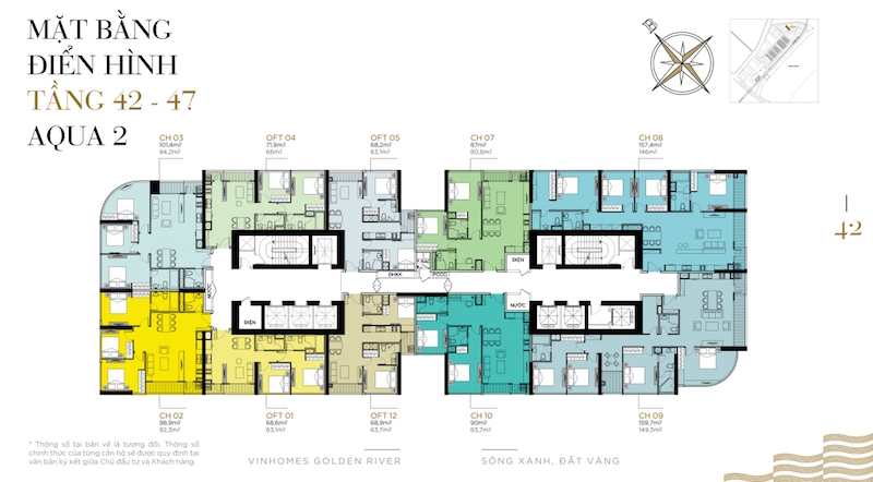 Mặt bằng căn hộ toà Aqua 1 và AQua 2