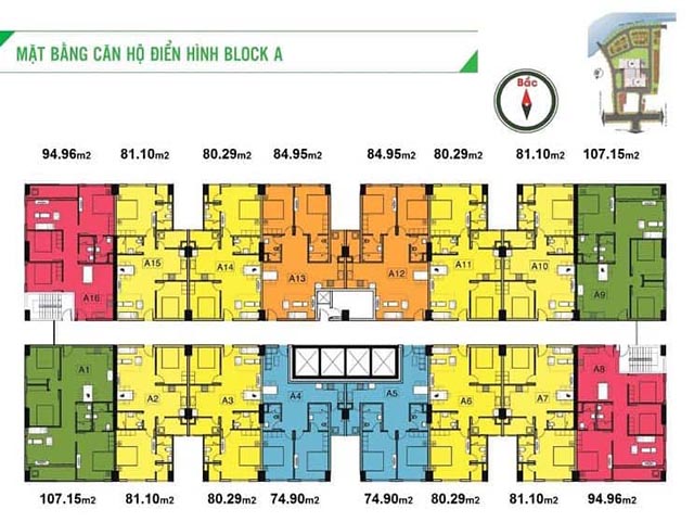 - 3 phòng ngủ: từ 94.95 m2 đến 107.15 m2