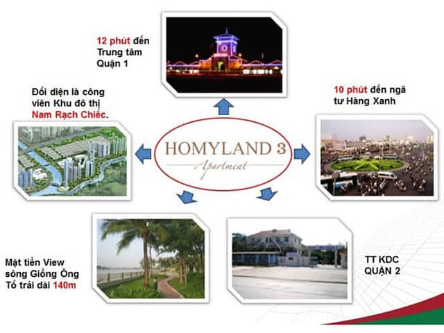 Homyland 3 có vị trí 4 mặt tiền. Gần. Nằm ngay khu trung tâm Tài chính – Kinh tế mới Thủ Thiêm, khu đô thị được kì vọng là đẹp nhất Đông Nam Á.