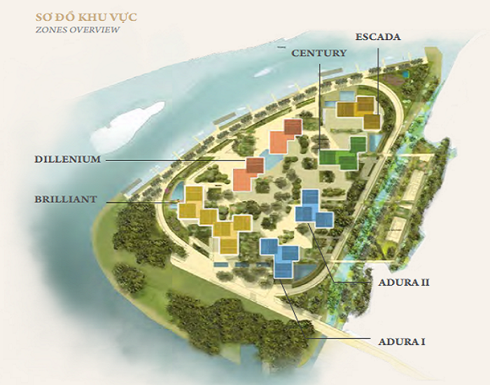 Gồm 5 khu vực: Adura, Brilliant, Century, Dillenium, Escada