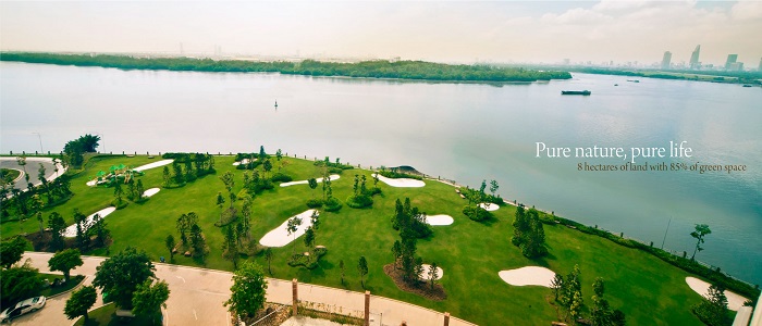 Từ Bến Du Thuyền trên sông Giồng Ông Tố của dự án qua bên kia bờ sông khoảng 30m là khu đô thị Thủ Thiêm đã được quy hoạch thành trung tâm mới của TP HCM. Bên trái của đảo tiếp giáp với sông Sài Gòn có tầm view sông nước tuyệt đẹp nhìn về Quận 1.