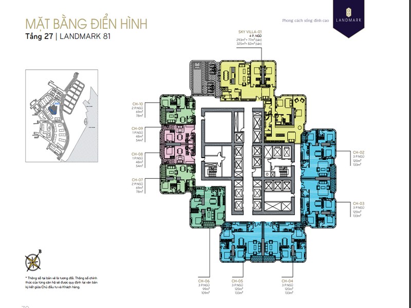 Khu căn hộ hiện đại (tầng 6 - 40) với căn hộ 1 - 4 phòng ngủ, sky villa
