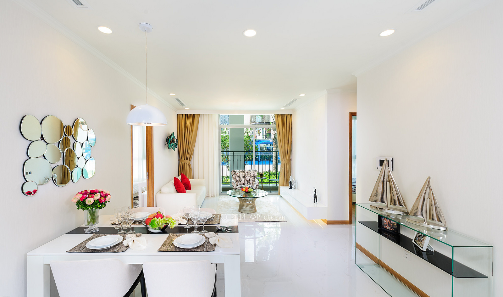 Khu vực phòng khách và bàn ăn của căn 2 PN Central 1