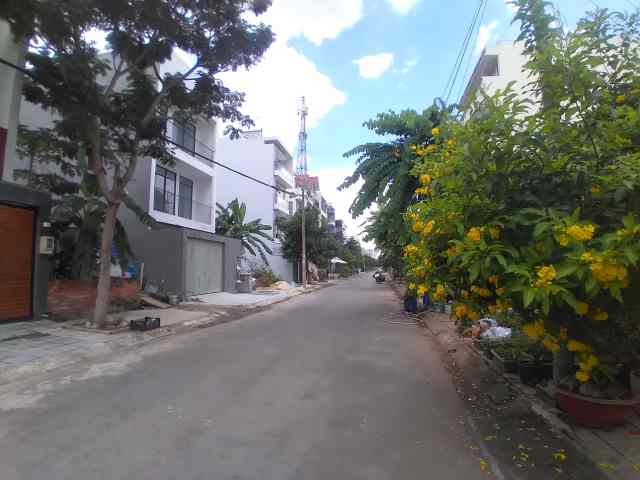 Đường trước nhà rộng 13m, có vỉa hè cây xanh