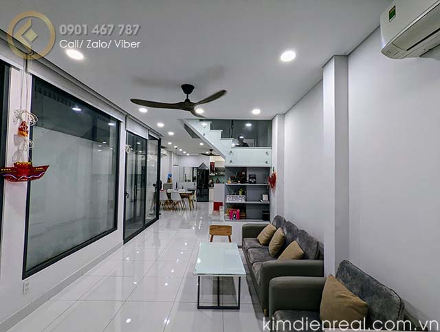 Nhà xây dựng 1 trệt, 3 lầu, ban công, sân thượng. Xe hơi đậu trong nhà