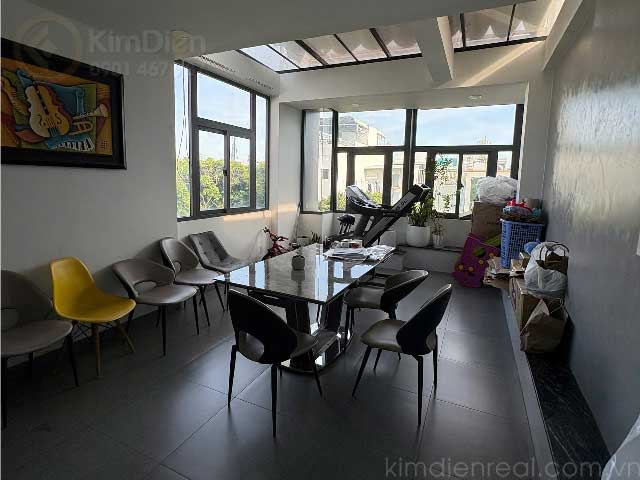 Thiết kế xây dựng kiên cố gồm 1 trệt, 4 lầu và sân thượng, mang đến không gian sống rộng rãi và riêng tư cho mỗi thành viên gia đình. Mỗi tầng đều có ban công lấy sáng thoáng mát.
