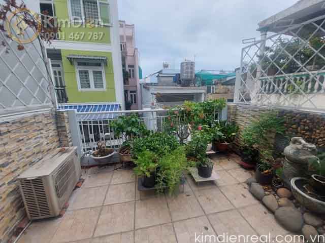 Nhà xây dựng đẹp gồm 1 trệt, 2 lầu, ban công, sân thượng. Trước nhà có sân rộng