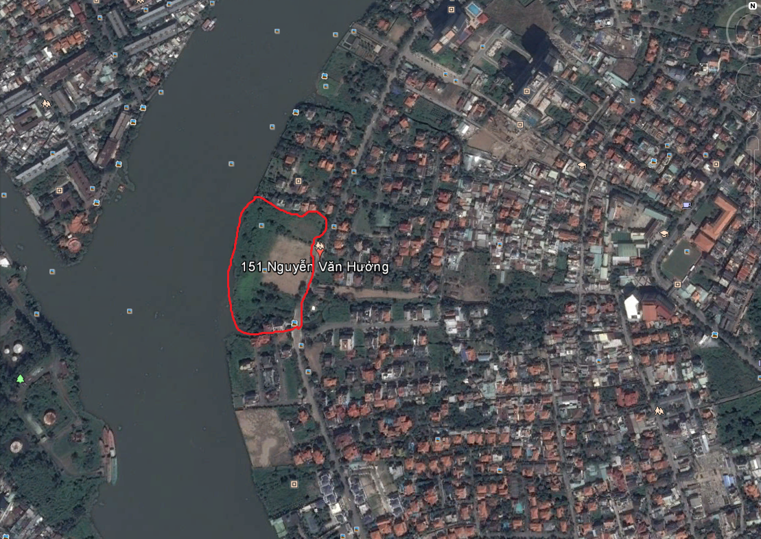 Vị trí của Holm Villa Thảo Điền nhìn từ vệ tinh, đây thực sự là vị trí đắc địa cho khu biệt thự ven sông ở Thảo Điền