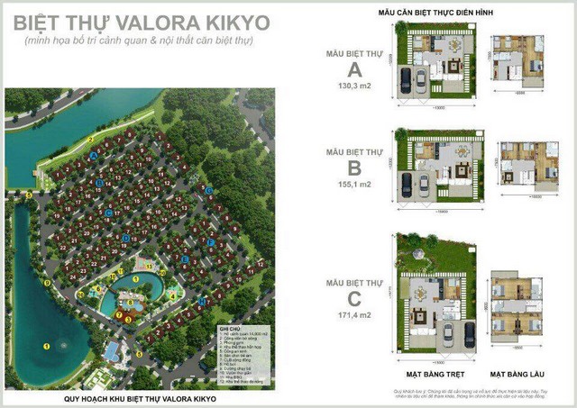 BÁN BIỆT THỰ QUẬN 9 VALORA KIKYO gồm 3 loại diện tích sau: