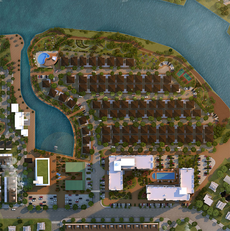 - Biệt thự được thiết kế đón ánh sáng tự nhiên, không gian xanh mát mẻ trong lành, nhiều cây xanh, thiết kế tinh tế tận dụng đến từng cm diện tích, 1 mặt hướng ra bờ sông, 1 mặt xoay quanh khuôn viên ven hồ cảnh quan.