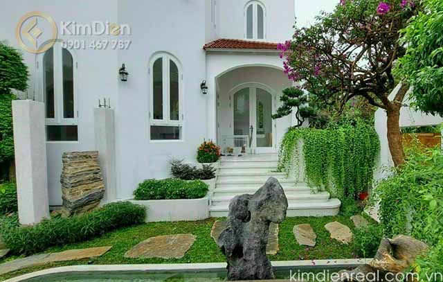 Biệt thự thiết kế xây dựng 1 trệt, 2 lầu, ban công, sân vườn.