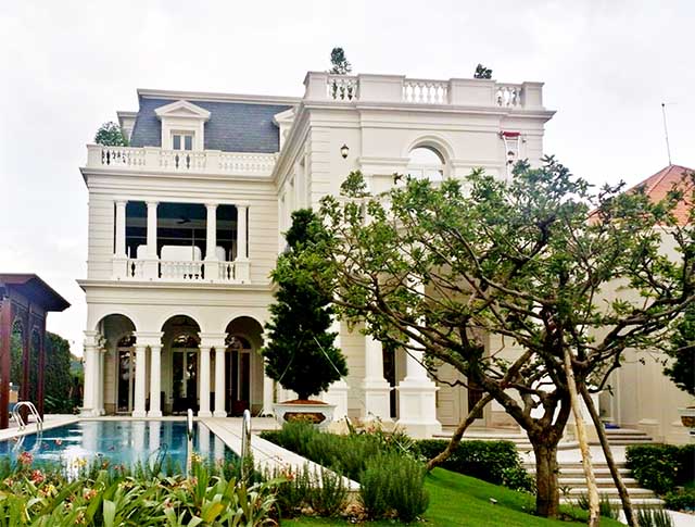 Biệt thự thiết kế mang phong cách tân cổ điển rất sang trọng kết hợp trang trí khuôn viên cảnh quan sân vườn rất đẹp - nhiều mảng xanh.