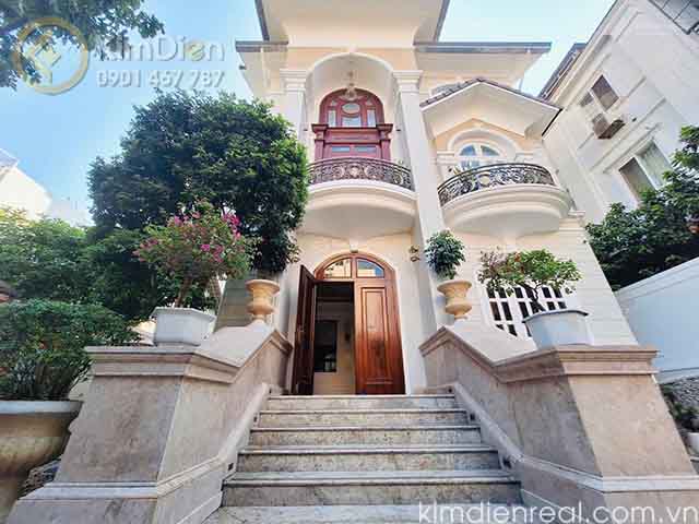Phòng khách, phòng bếp, 5 phòng ngủ, 5 vệ sinh, phòng làm việc. Biệt thự có hồ bơi, sân vườn được trồng nhiều cây xanh mát