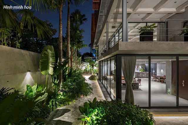 Kết cấu xây dựng gồm 1 trệt, 2 lầu, có hồ bơi, sân vườn. Phòng khách, phòng ăn, phòng giải trí, 5 phòng ngủ
