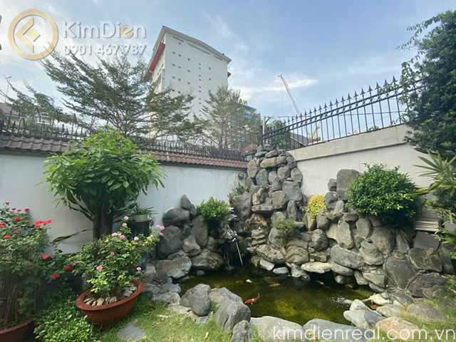 Biệt thự có diện tích 381m2 đất, mặt tiền 16.4m, chiều dài 23m, lô đất vuông vức. Biệt thự xây dựng đẹp sang trọng gồm 1 tầng hầm, trệt, 2 lầu, ban công, sân vườn tiểu cảnh