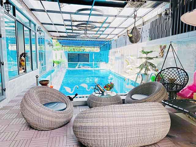 Phòng khách, phòng bếp, 5 phòng ngủ, phòng làm việc. Nội thất cao cấp sang trọng. Biệt thự có hồ bơi sân vườn rộng