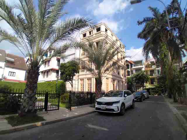Nhà có diện tích đất rộng 182m2, mặt tiền 14m, mặt tiền 13m. Kết cấu xây dựng gồm 1 trệt, 2 lầu, sân thượng, ban công. Phòng khách - phòng bếp, 6 phòng ngủ, 6wc. Trang bị nội thất cao cấp