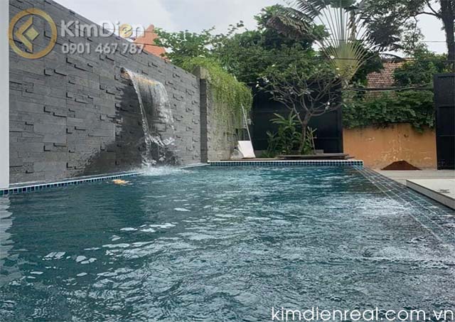 Villa thiết kế xây dựng hiện đại rất thoáng và sáng, gồm 1 trệt, 3 lầu, sân thượng, hồ bơi, sân vườn.