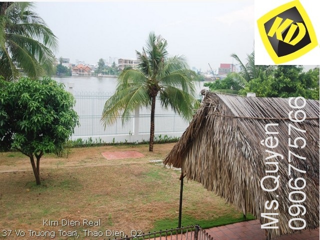 Biệt thư Thảo Điền có diện tích 900m2, có sân vườn rộng rãi, có nhà chòi nhìn trực diện sông, hồ bơi rộng nhìn sông.