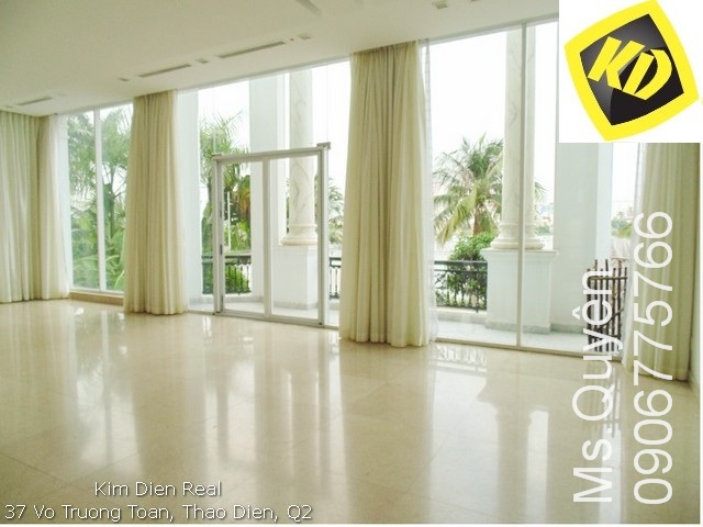 Biệt thự bờ sông đường Nguyễn Văn Hưởng, Thảo Điền, Quận 2 nằm trong khu Compound có bảo vệ 24/24 tuyệt đối an toàn. Cạnh sông, nhiều cây xanh thoáng đãng, yên tĩnh mát mẻ. Gần siêu thị, trường học quốc tế.