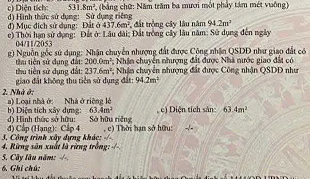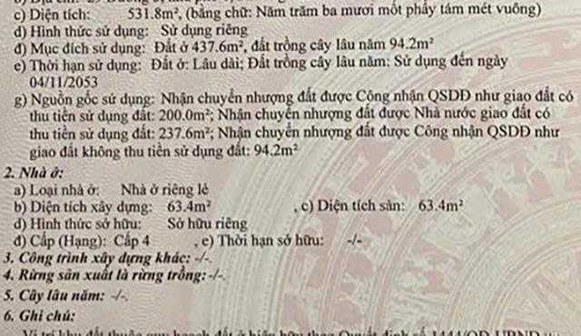 Diện tích đất 531.8m2, đất ở thổ cư. Mặt tiền 21m, chiều dài 23m, thửa đất vuông vức. Đường trước nhà rộng 7m2