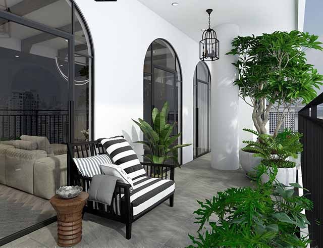 Thiết kế đẹp gồm 1 trệt, 2 lầu, sân vườn cảnh quan cây xanh có hồ bơi, khu BBQ.