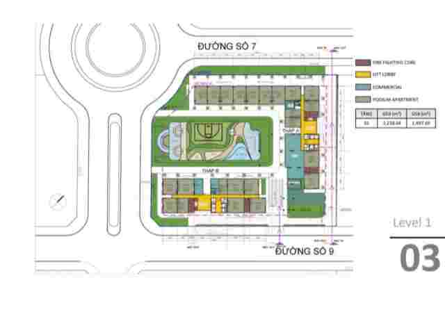 Diện tích sàn xây dựng 39.945m2, tổng số căn hộ 589 căn